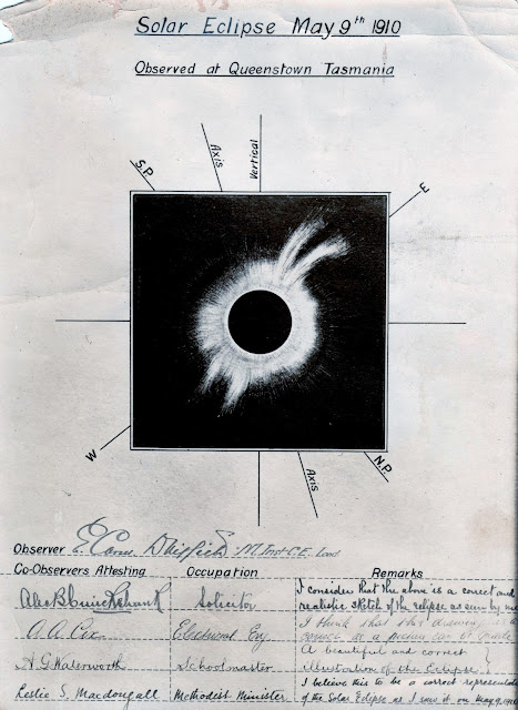 On 26 May 1910 Leslie Macdougall and James Booton received a letter from Mr.McClean, leader of the Astronomical Party that went to Port Davey to view the Eclipse. It reads: